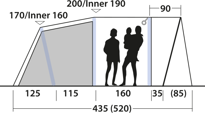 Pouvant accueillir jusqu'à quatre personnes, cette tente est idéale pour les petites familles ou pour de premières aventures de camping avec de jeunes enfants. Un climat intérieur agréable est assuré par les ouvertures de ventilation situées au-dessus des fenêtres frontales, à l'arrière de la tente ainsi que par la ventilation protégée sous l'auvent profond.