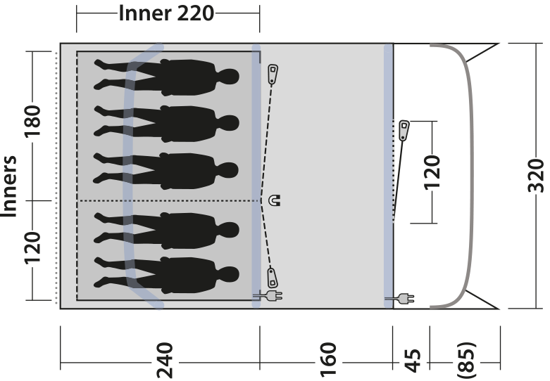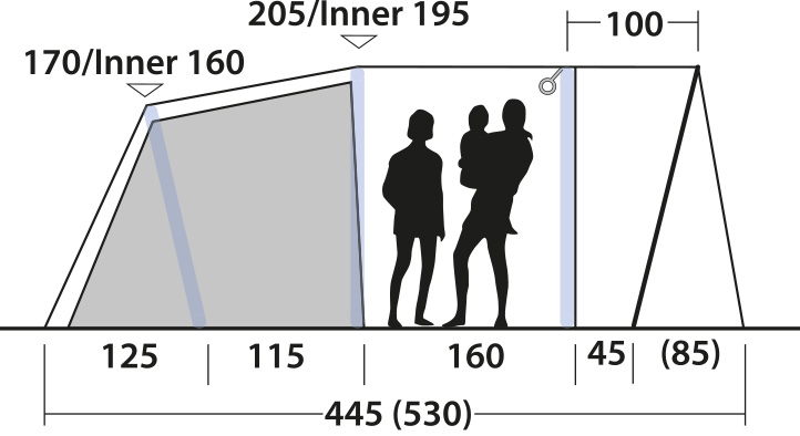 Idéale pour les petites familles ou pour les premières aventures de camping avec de jeunes enfants, la tente dispose d'une ventilation bien pensée pour garantir un climat intérieur agréable. La porte intérieure brevetée Quick & Quiet avec fermeture magnétique permet en outre un accès silencieux et simple aux cabines de couchage.